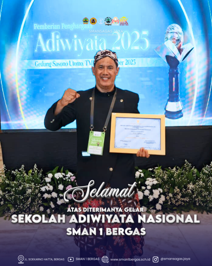 SMA Negeri 1 Bergas kembali menorehkan prestasi gemilang melalui acara Penyerahan Penghargaan Adiwiyata Mandiri dan Adiwiyata Nasional Tahun 2025 yang diselenggarakan di Gedung Sasono Utomo, Taman Mini Indonesia Indah (TMII), Jakarta. Penghargaan ini menjadi capaian penting yang menandai komitmen panjang sekolah dalam mengembangkan budaya peduli lingkungan serta mewujudkan sekolah berwawasan ekologis.